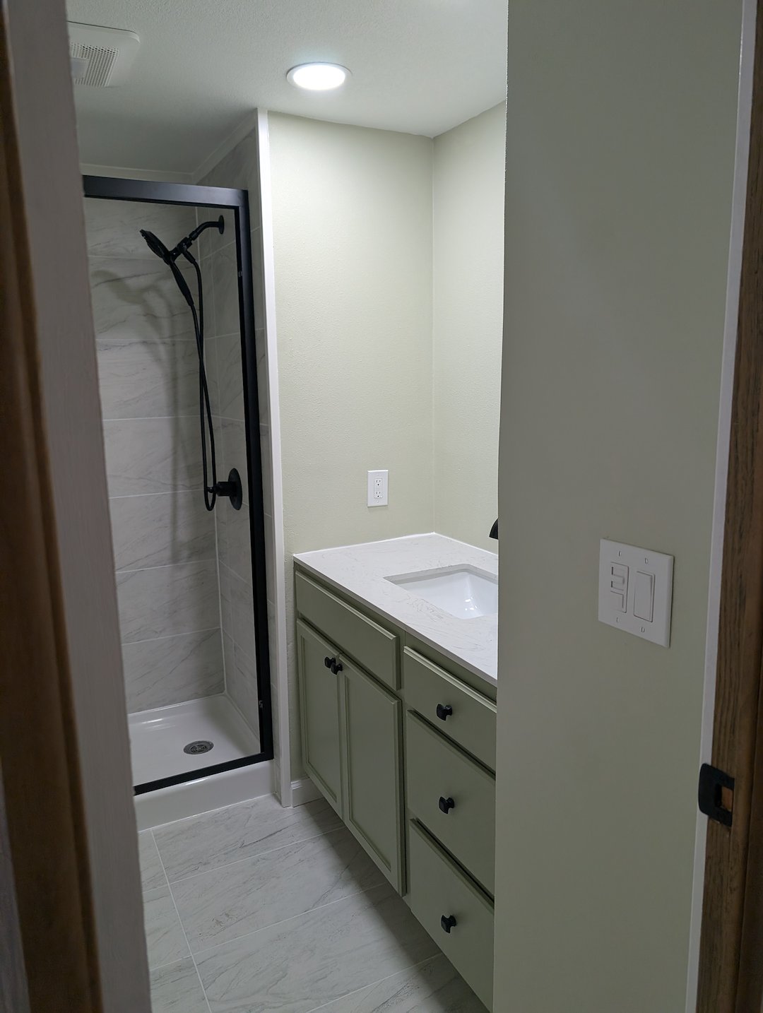 In Brooksville, FL, homeowners seeking reliable, high-quality bathroom renovation services turn to Mr. Genie Handyman, the trusted local expert delivering transformative results. Recently, we completed a stunning modular home bathroom renovation that showcases our commitment to craftsmanship and modern design. This project involved professionally removing the outdated shower surround and installing premium tile featuring built-in corner shelves for added functionality and elegance. We upgraded to upscale shower doors that enhance both style and durability. Additionally, we removed old acoustical ceiling and wall panels, replacing them with properly installed sheetrock textured for a sleek, contemporary look. Custom bathroom vanity cabinets with a durable countertop were fitted perfectly, complemented by a new niche bathroom cabinet custom-painted to match the refreshed aesthetic. To complete the transformation, we installed a beautiful new tile floor, creating a cohesive, spa-like retreat. As Brooksville's go-to handyman, Mr. Genie Handyman specializes in full bathroom upgrades that blend practicality with upscale finishes, using top-tier materials and precise techniques to boost home value and daily comfort in Hernando County homes.